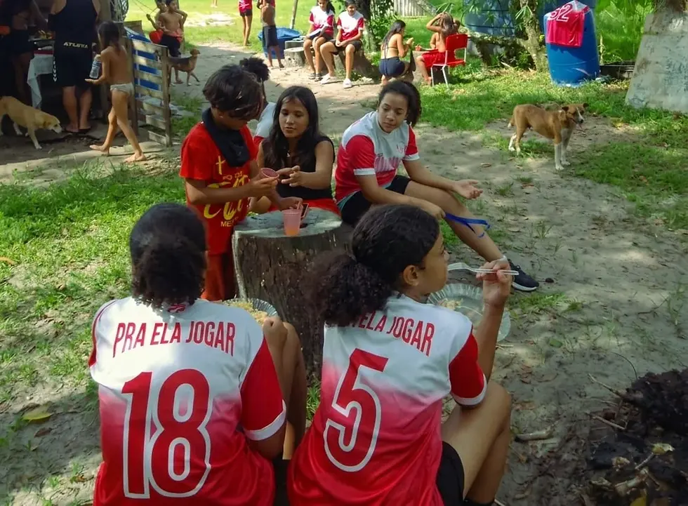 A experiência inicial foi marcada pela aproximação com os modos de vida indígenas, seus valores comunitários, a relação ancestral com a terra, com a água e com o tempo. Em seguida, as meninas participaram de um amistoso de futebol concebido não como disputa, mas como celebração do encontro. Realizado sem vencedores, o jogo teve como propósito fortalecer a união, o respeito mútuo e a cooperação, rompendo com lógicas competitivas e evitando rivalidades. Ao final, todas receberam medalhas de participação, símbolo de que, naquele território de encontro, todas saíram igualmente vencedoras.